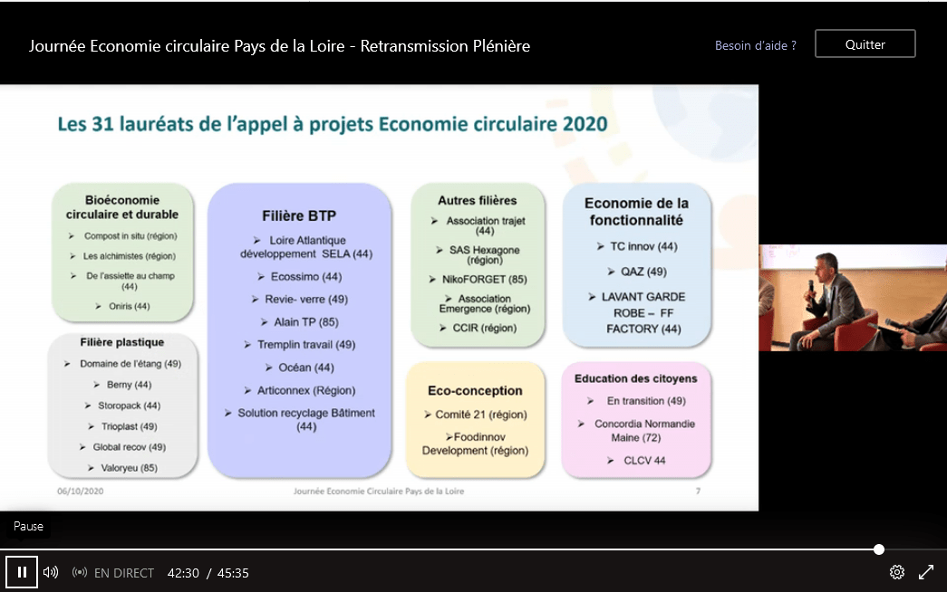 Ce 6 octobre, lors de la Journée régionale de l’économie circulaire, il a été annoncé qu’En Transition est lauréat de l’appel à projet régional 2020 porté par la Région Pays de la Loire, la DREAL et l’Ademe, avec notre projet pour « sensibiliser, former et accompagner les ambassadeurs de l’économie circulaire des Campus angevins » !