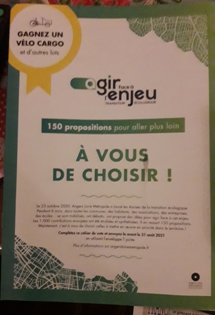 Les contributions ont été synthétisées pour arriver aux 135 propositions présentées et soumises au vote des habitant·e·s d’Angers Loire Métropole depuis le 5 juillet et avant le 15 septembre (le délai a été prolongé de 15 jours).