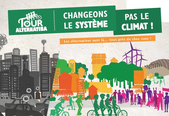 Du 9 juin au 6 octobre 2018, le Tour Alternatiba parcourra 5 800 kilomètres sur des vélos multi-places à travers la France et l’Europe. Les cyclistes s’arrêteront dans 200 étapes pour parler des alternatives permettant de contrer le changement climatique.